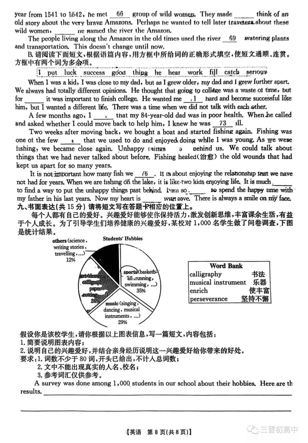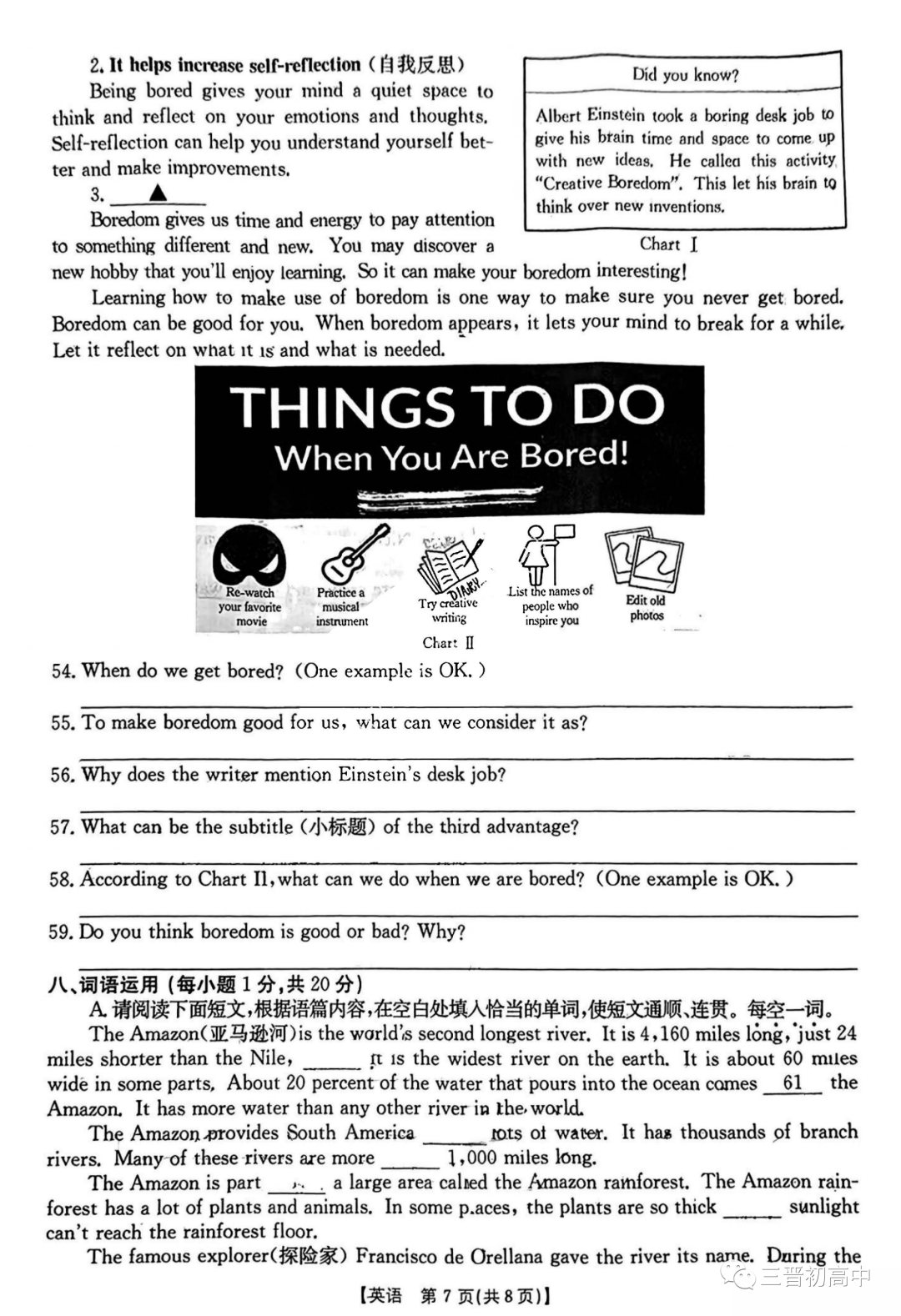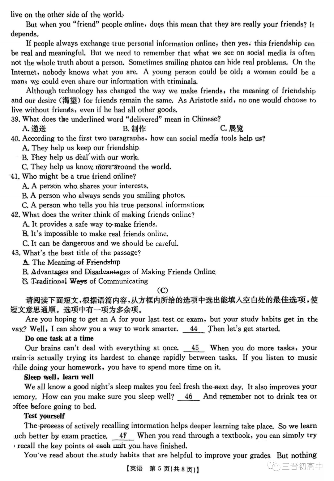2023太原五中九年级摸底试题及答案全 含英语听力