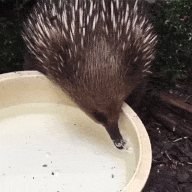 针鼹的鼻子和管状的嘴是长在一起的,喝水还会吐泡泡