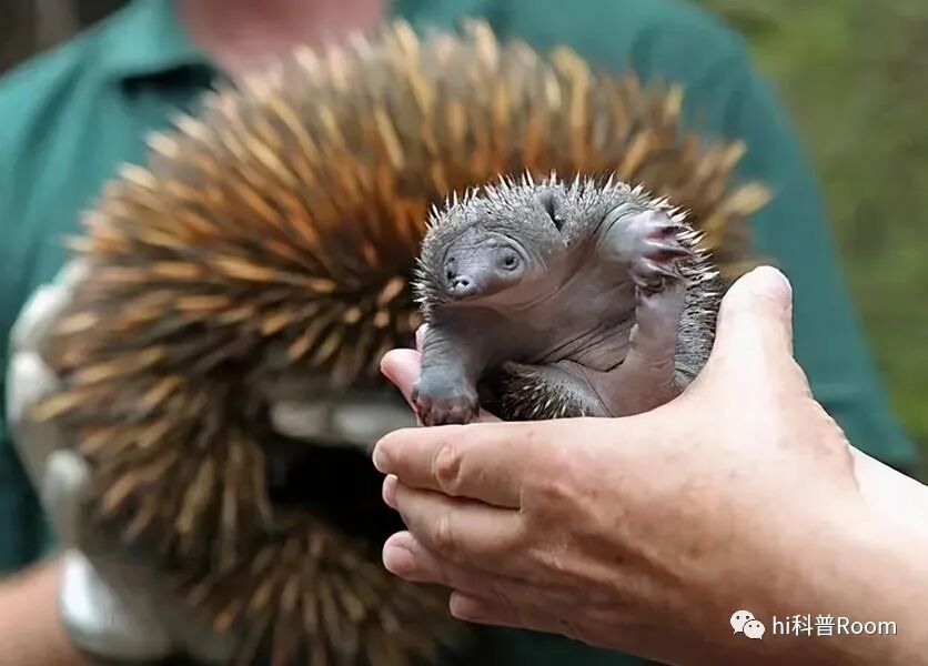 在澳洲动物园出生的小针鼹,和它的妈妈