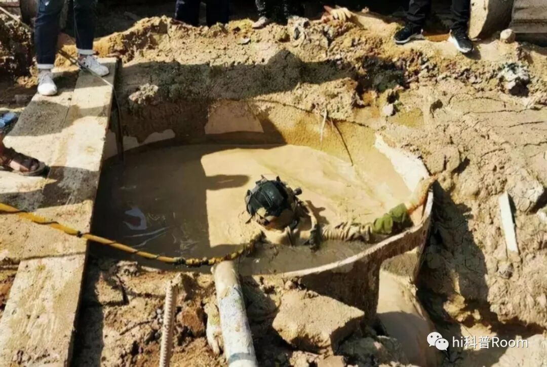 但是实际上,机器人要想打捞钻头是非常难的,因为机器要靠电子识别才能做出行动。但是工地打桩的时候里面全是泥浆,泥浆的能见度几乎是零,下面什么都看不清楚,而且,泥浆不能稀释,泥浆比重越高越容易塌孔,那样就更危险。工地也试过其他办法,比如用弯钩慢慢地把钻头勾出来,但勾起来的概率特别低,很少有成功的。然后,大家又用强力电磁铁吸,希望把钻头吸出来,但是钻头太重了,这种方法也没有多大效果。所以,机器没有办法,才只能让“水鬼”代替。