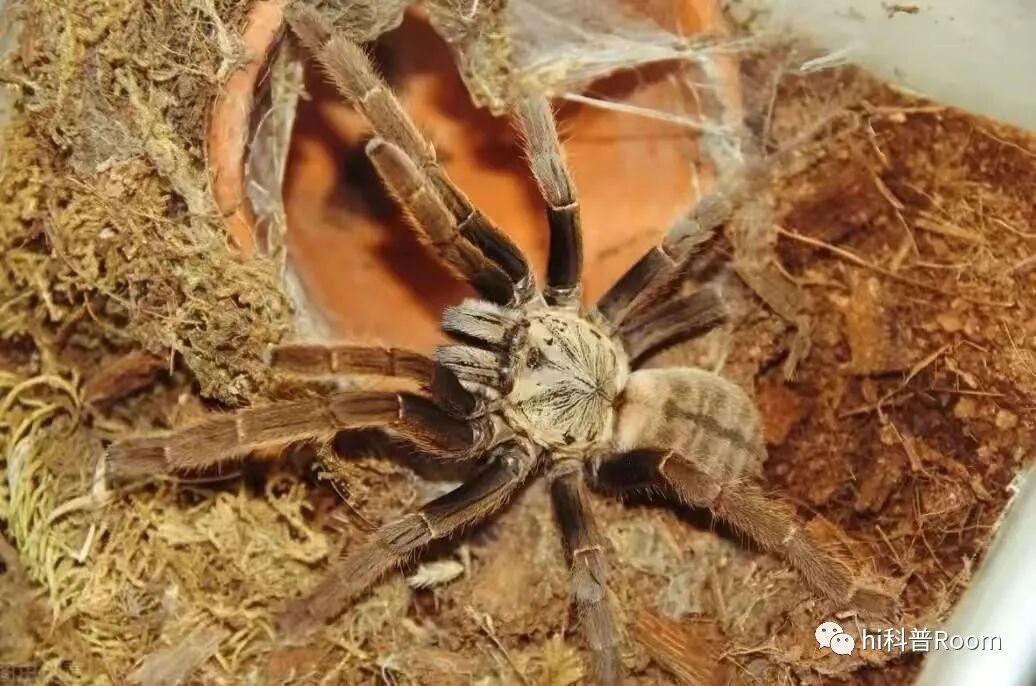 更重要的是,除了喜欢吃蜣螂,虎纹捕鸟蛛还和其它蜘蛛不一样的一个地方是,它喜欢住在洞穴里。不过由于身体构造比较特殊,它们不会自己挖洞,就只能去抢占别的动物的洞穴,而蜣螂就喜欢在找到牛粪后,把牛粪滚到一个安全的地方并且挖个洞给它藏起来,以供日后使用。这对虎纹捕鸟蛛来说无异于是“瞌睡遇上枕头”了,所以基本上只要有蜣螂的地方,就有极大的可能会出现虎纹捕鸟蛛。