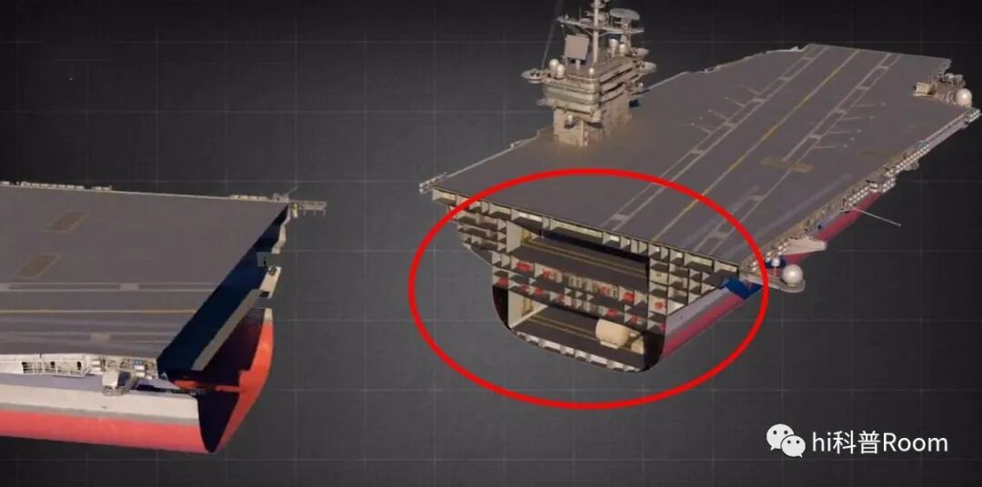 美国自然也非常重视这些弱点,于是特意做了防护。那么想要击沉美国现在的尼米兹级航母有多难呢?首先,美军深知军舰的弱点是弹药库、油箱和军机库,于是这些重要位置往往被储存在航母内部最核心区域。然后在航母的水线位置上设置了2-3米的连续装甲带,采用强度超高的特种钢加固,想要利用反舰导弹击穿水线位置的船体,让航母进水沉没已经不太可能了。同时,船体两侧设计了反鱼雷空间,大多数情况下,即便被一枚鱼雷命中,反鱼雷外层龙骨也会分散能量,最多会在底部冒起一个大水泡,让航母向上抬起然后重新落回海里。