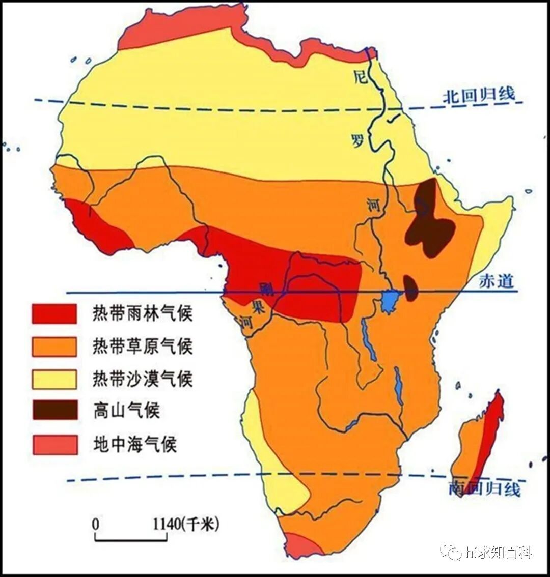 (非洲大陆气候图,可以看出热带草原气候占大部分面积)