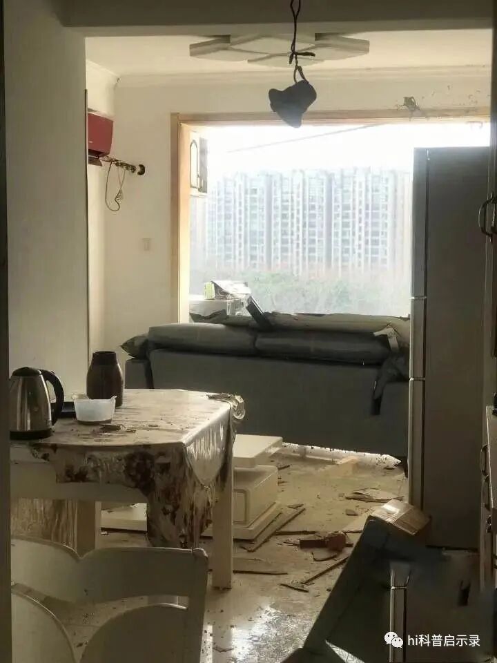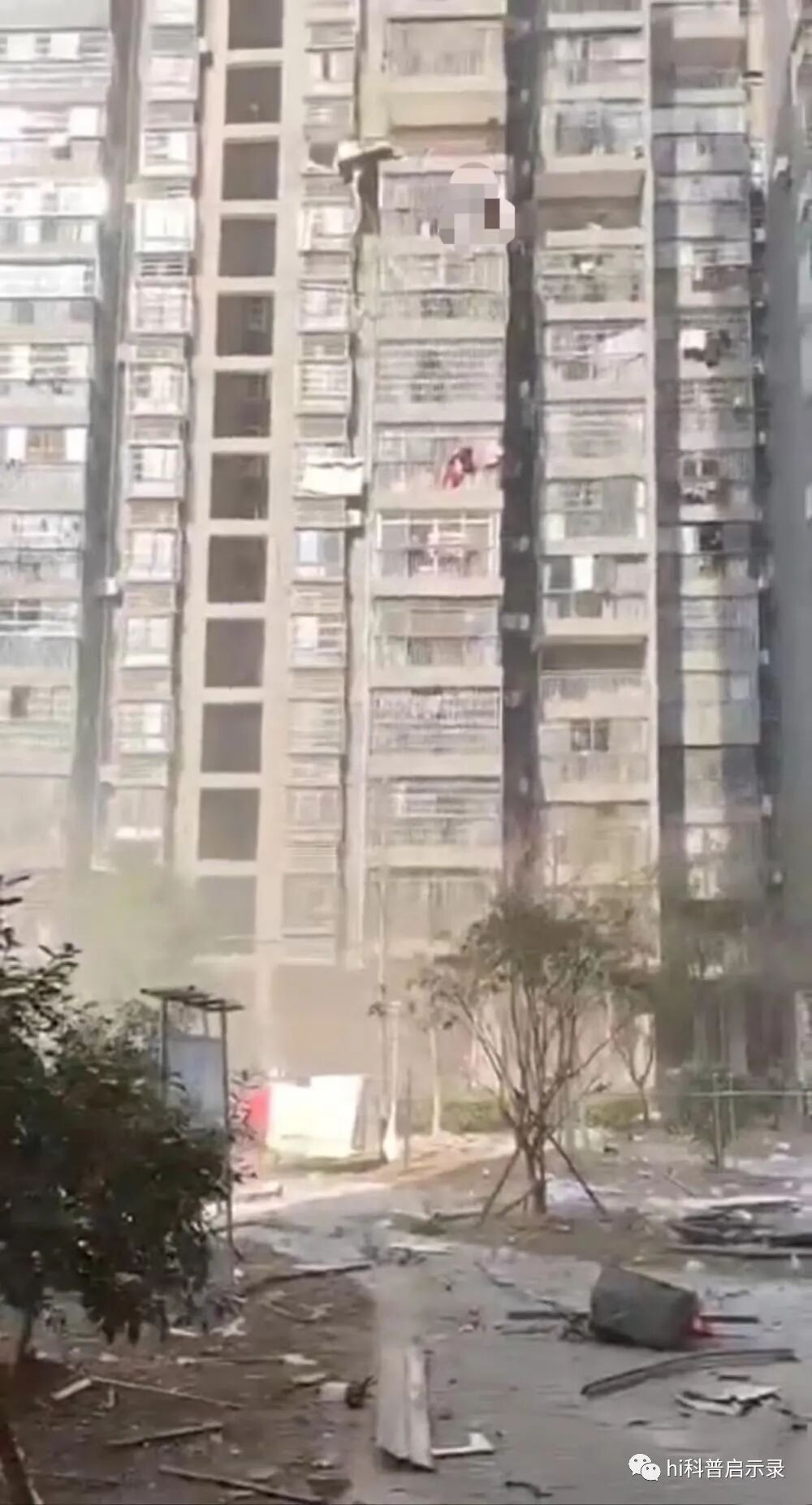 这种爆炸的特点就是十分迅速和剧烈,没有任何预兆,整个过程给人反应的时间不到0.1秒,而且威力十分巨大。从现场的画面来看,发生闪爆的应该是第10栋居民楼的第10层住户。可以看到事故发生以后,上下的楼栋承重侧梁已经被炸歪,尤其是第10层附近的弯曲程度最严重。而且闪爆的波及范围不止这一栋楼,楼外的设施也是被震得七零八落,院落里灰尘遍地,散落着被炸飞的石块和玻璃。甚至还有一根钢条直接插入了一辆白色轿车的后窗玻璃,令人后怕不已。