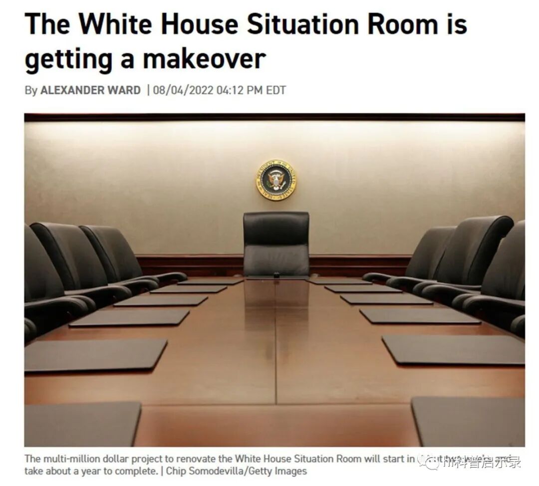 此后佩洛西整个窜访行程,都在白宫战情室的全程监控之下,毕竟这可是事关中美两国的大事,一旦有意外必须第一时间处置,白宫战情室就是最佳的应对地点。也许是坏事做的有点多,美国时间2022年8月4日晚,白宫附近遭遇雷击,先后有6道闪电击中地面上的同一点,闪电产生的巨大电流,可能也影响到战情室。再加上这里至今已使用60余年,每天都有大量人员不间断工作,设施老化严重,虽然此前也有过多轮装修,但基本都是小修小补,最大的一次改扩建,还是在布什总统时期。2007年,布什下令装修战情室,将其面积从原来的500多平扩大到744平,铺设了64公里的通讯光纤,以及32公里的电缆和9200个光纤接收器,彻底改变了战情室装备落后的局面。时隔15年后,战情室再次迎来装修,并且这次耗时一年斥资数百万美元,到底会呈现出何种模样让我们拭目以待。据美媒报道称,此次装修后“将使团队工作效率更高,拜登总统作出重要决定将更加干练”。不知美国政府此举,是不是想达到通过提升硬件水平,来弥补拜登总统反应迟钝的目的。只是不知下次总统选举后,拜登还是否有机会,继续使用这间战情室!