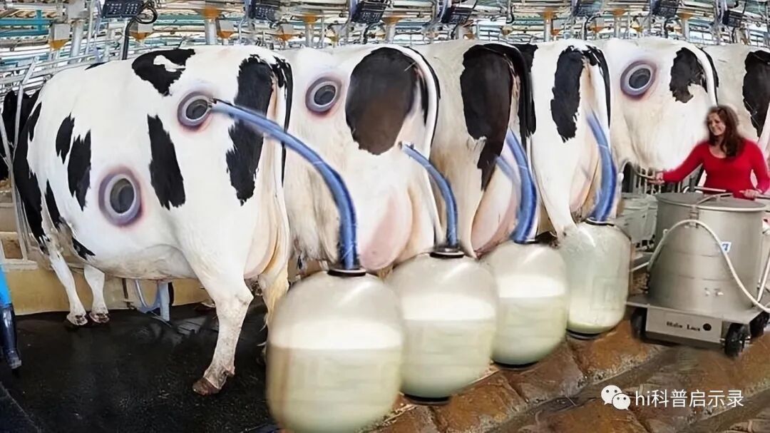 相比之下,奶牛的乳腺管就比较长比较深,其乳房可以储存的乳汁较多,一天只需要挤个两三次就行,最多不会超过5次,每次还都能挤一大桶。