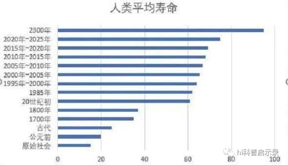 在解密这个结论之前,我们先来看一下从古至今人类的平均寿命长度的变化。