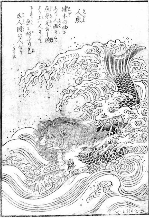 被海包围的日本,有自己独特的人鱼传说。日本最早的记录,可以追溯到619年,推古天皇统治时期。据说捕捉到一条人鱼,并向天皇展示。日本的人鱼,与西方流传的,拥有美丽女性上半身的生物,有很大的不同。可以说,在受到西方形象影响之前,日本的人鱼,无论在外观还是行为上,都与西方截然相反。 日本的人鱼经常有长着头发的,类似人类的头部,但却被描述为,野蛮的怪物,比起美丽的女性,更像是猴子和鱼,混在一起的样子,甚至有些怪诞。 有些人鱼的手臂,长着鳞片和扭曲的指甲,看上去就像,人的手臂。还有完全没有,手臂的人鱼。在很多传说中,出现的人鱼,都是鱼的身体上,长着一排尖锐的牙齿,长着一个像人一样的脑袋,并没有相当于,人身体的部分。头部是歪斜的,也有长着角和牙的情况。也有可能是,普通人的脑袋。虽然也有与,西洋人鱼相似的传说,但其外貌更像恶魔,给人以不吉利的印象。据说,这种更接近人类的,日本人鱼拥有,光滑白皙的皮肤和云雀般的声音。 还有流珍珠泪、吃珍珠肉的人长生不老,等各种神话特征。另外,和许多日本神话中的,动物一样,也有人鱼的传说。 例如,19世纪70年代的,北海道,纳沙布岬的灯塔守卫们,相信人鱼会变成,危险的水母。该人鱼在海边化装成,身穿美丽和服的女子,诱惑男子并将其拖入大海,然后变成巨大的水母将其杀死。