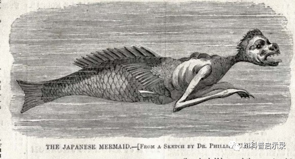 如果你认为,这是骗小孩子,那就大错特错了。当时,很多人都信以为真,就连专家也被骗了。1863年,权威杂志就描述过,这种罕见的工匠技艺。日本人拥有惊人的知识,能够自然而缜密地制作出人鱼标本,连受过训练的博物学家都能被其蒙骗。随着人气的高涨,日本的人鱼,开始在各种场合亮相。。普利茅斯、刀锋木露台的卡明船长,从日本横滨回国,带回了很多土特产。其中之一就是人鱼。头是一只,牙齿突出的小猴子,头部和上半身覆盖着薄薄的羊毛。长着指甲的细长手臂下,肋骨清晰地浮现出来。在它的下方,鱼皮紧紧地,连在一起,几乎分辨不出,哪里是鱼和猴子的接缝。鱼的部分有很大的鳞片、脊椎骨、四方形的尾鳍,像是矮鲤(鲤科淡水鱼)的同类。虽然几乎完美无缺,但头上有为了做接手,而去除的痕迹。全长40厘米左右,猴子部分的颜色是,纯的蓝灰色,鱼的部分是,自然的颜色,整体保存状态也很好。 对其工艺赞不绝口,这是人们,对日本产人鱼的普遍看法。另外,它的小巧,也值得大书特书。日本的人鱼,大部分都比人类小,最多只有90厘米左右。巴黎有名的人鱼,身高只有63厘米。看到这一幕的某个人,这样描述道。下半身,用鲤科的鱼皮和鳞片做成,小心翼翼地固定,在木制的身体上。人鱼的上半身,像狮身人面一样,撑着胳膊肘和前臂。手臂瘦骨嶙峋,手指也瘦得像一具骸骨。指甲是用小小的象牙或骨头做成的。