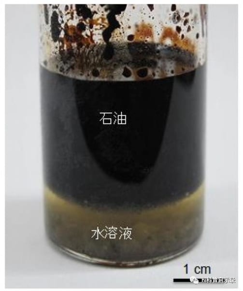另外,在400℃的温度下,黑色液体与水一起生成,根据化学分析的结果,与在地球上计算出的石油成分相同。从以上实验可以确认,加热模拟星际有机物会,生成水和石油。即使没有彗星和矿物,只要有有机物,就有可能解释地球水的起源。 另外,含有有机物的小行星内部可能蕴藏着大量的石油。
