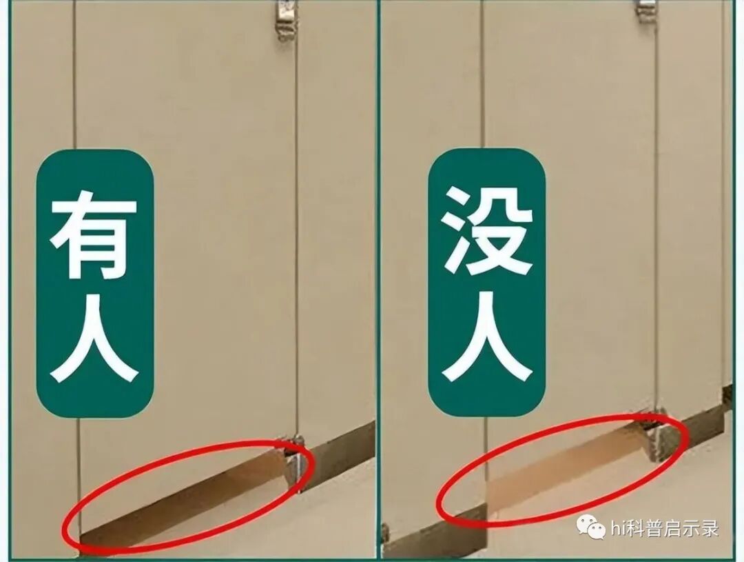 如果有人在公共厕所出现此类症状,处于密闭空间的话,不仅空气不好流通,还很难被人发现。但有这么一道缝的话,人摔倒在地就很容易被发现了,而且这种空气流通能够让空气长时间流通,增加了救治病人的可能性。除此之外,门缝的设计好友很多妙用,比如万一有人上厕所只带手机不带纸,就可以让朋友过来,从门缝底下塞进来,这样就不需要从头顶上抛下来了。其次,厕所隔间的“有人/无人”标识都比较小,需要走进才能看清,甚至有的根本无法靠着判断里面有没有。如果挨个去敲门,别提有多尴尬了。而通过门缝我们就可以看到,如果里面有人的话,地板一定会有影子,这样辨别非常方便。