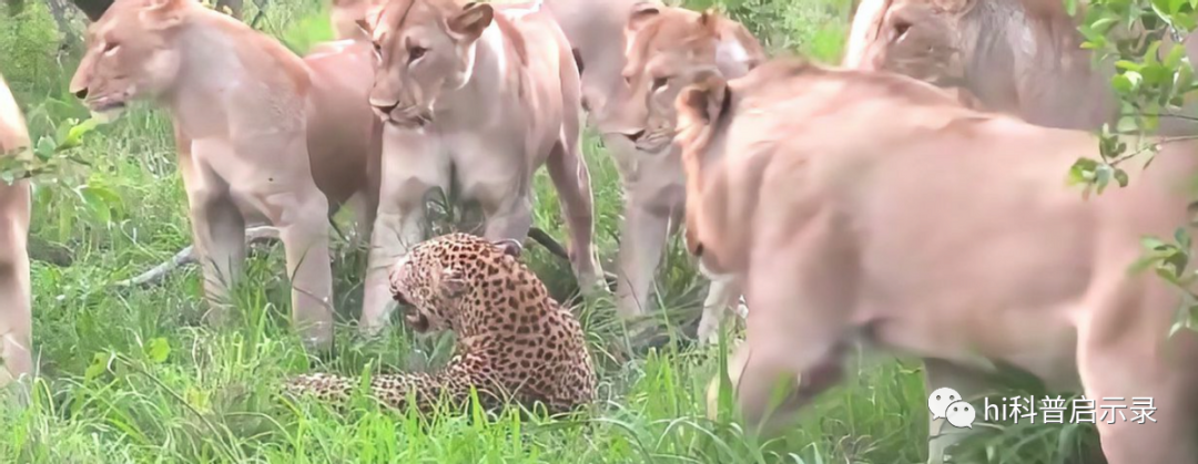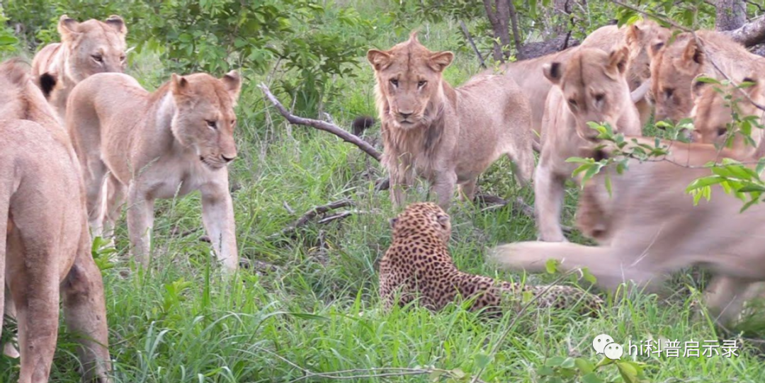 群狮将一只花豹团团围住,宿敌见面分外眼红,眼看着一场厮杀大战即将开启,那么这只号称以速度取胜的花豹,能否顺利逃出群狮子的围攻呢?按照双方的武力值来说,当一只花豹对战一只狮子时,勉强还有赢的胜算,但是遇到一对多的情况,任谁看了,都觉得这只花豹必死无疑,但真的是这样吗?
