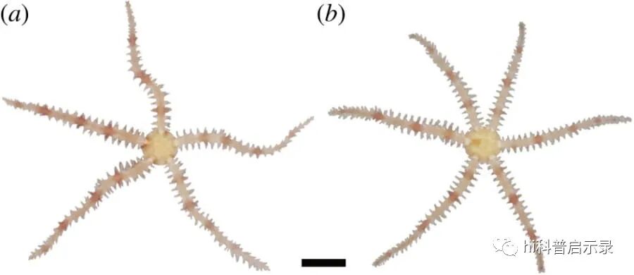 研究小组发现,海蛇尾倾向于将与被触碰的手臂相邻的两个方向定义为向前。具有可变臂数的海蛇尾运动的一般模型哪个是脆星的“正面”?海蛇尾是类似海星的海洋生物,它们使用灵活的手臂在海底移动。手臂的数量从 4 到 7 不等。海蛇尾是一种径向对称的动物,身体呈星形,没有前、后、左、右。这包括海星和海胆。课题组通过对海蛇尾逃逸行为的实验,阐明了径向对称动物确定前进方向的机制。