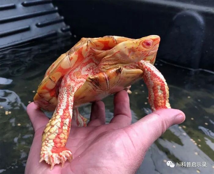 然而,如上图所示,白化海龟似乎不仅会变成白色,还会变成红色和黄色。由于它的外观,它有时被描述为“像一条小喷火龙”。但是白化乌龟在之前有一段艰难的生活。视力不佳让你脱颖而出据专门从事白化陆龟养殖的阿克娅·迈克介绍,“哺乳动物和鸟类基本上都是白色的白化病,但对于龟和蜥蜴等爬行动物来说,可能会残留一点个体原有的色素。所以你会得到淡红色,橙色、粉色和黄色。”