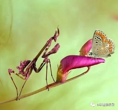 但是螳螂是如何进化成看起来像一朵花的呢?在一朵花上花费数万年,它看起来像一朵花自然界中的许多花朵都是由昆虫授粉的,所以花朵周围总有昆虫可以取食。起初,花卷螳螂看起来和其他螳螂一样,外表平淡,但据说它在寻找花朵的过程中,长得和花朵一模一 样。一直守在花的顶端,直到它进化为止,是一种不适合它华丽外表的耐力。螳螂还在婴儿时期分泌与蜜蜂相同的信息素。因此,蜜蜂更容易聚集在螳螂周围,从而更容易捕猎。除了视觉模仿之外,令人惊讶的是,它们已经进化到还可以进行化学模仿的地步。