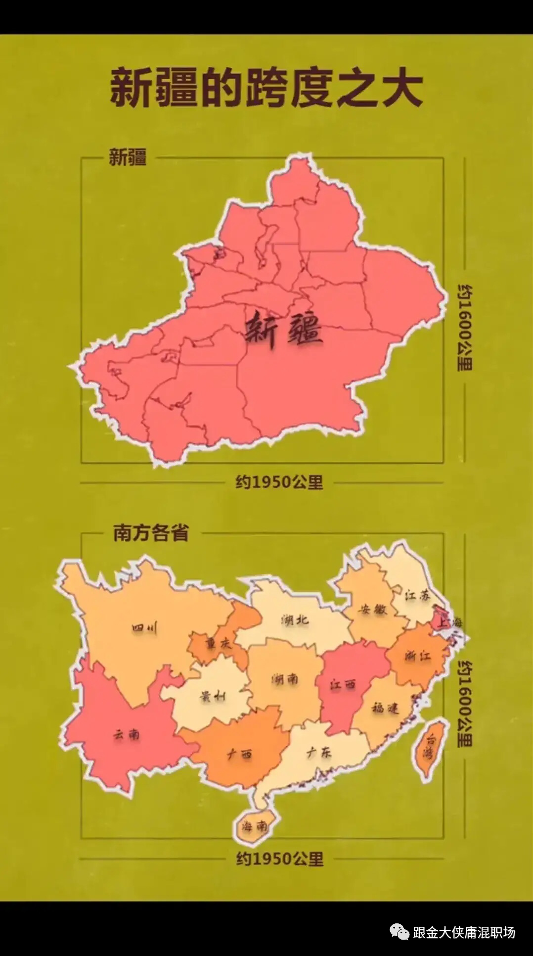 新疆确实很大,要知道四川也是大省!原来一个新疆面积几乎相当于整个中国南方了。