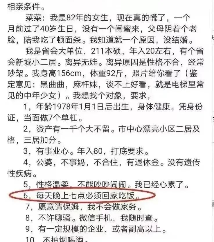 只是有朋友愤愤不平地指出:【80万+年收入,什么样的小姑娘找不到,要找离异的老阿姨?还打底要求?】——我觉得也颇有道理哈。仅供菜菜参考。