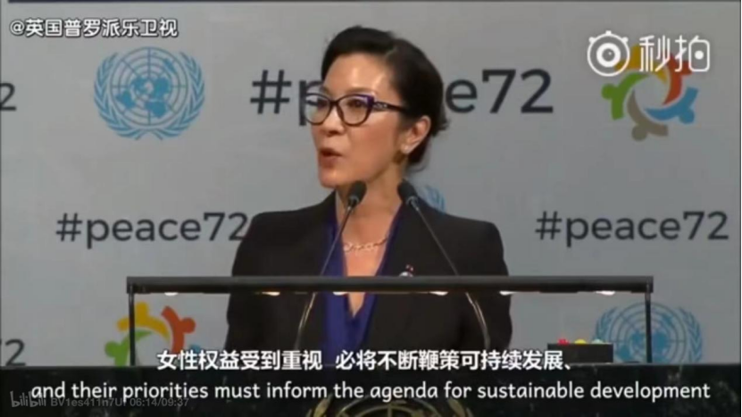 演讲中,杨紫琼全程脱稿。在联合国这个舞台上,支撑她的不再是美丽的皮囊、高强的武艺,而是岁月打磨后的坚韧与悲天悯人的大智慧。