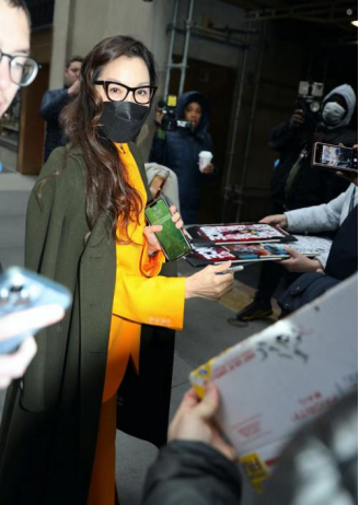 近日,一身亮黄色西装的杨紫琼现身纽约NBC电视台节目受访并宣传其新片《瞬息全宇宙》。