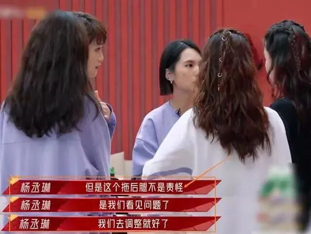 就在其他人都围成一团安慰她时,作为队长的杨丞琳却选择了直说:“我看到了,确实拖了后腿。”