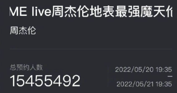 这次周杰伦演唱会重映活动在官宣后3天内就有超1500万人预约。