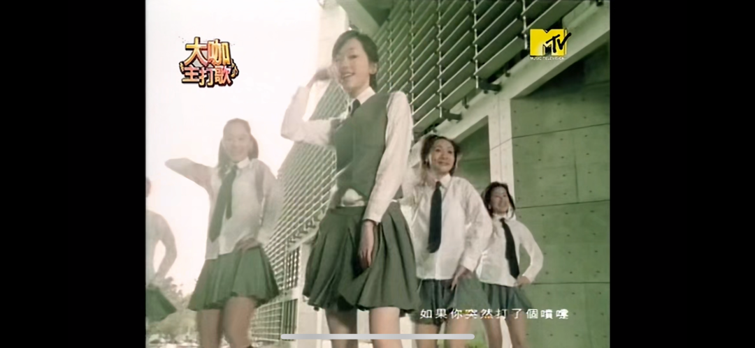 于是就有了mv里,王心凌身穿制服,和舞者手拉手跳舞的可爱模样。