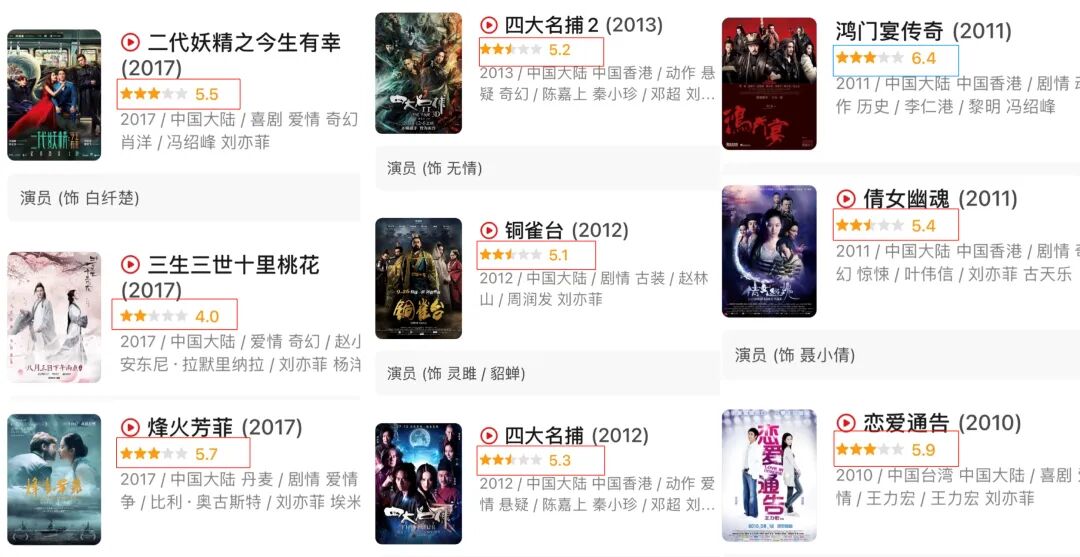 怎料到,在这么好的平台上,她以平均每年两部片的速度,成为了新晋“烂片女王”。