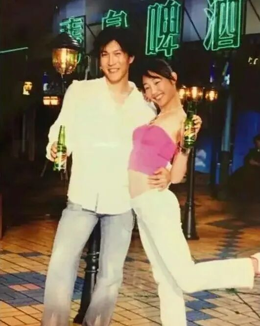 拍摄中,19岁的白百何身材出挑,她身穿红色吊带,落落大方地抱着男搭档。