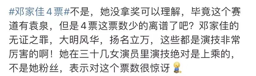 颁奖典礼当晚,一边是 #沈腾0票# 爆上热搜,另一边是无数人为“沧海遗珠”邓家佳感到意难平。