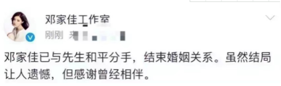 2019年,选择分开时,工作室简单发布了一则离婚声明。