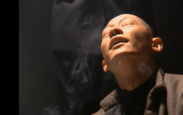 只见他先是对着镜子注视着自己,眼神中流露出冷漠和决绝。接着,看着儿子和弟子的照片,脸上露出了一丝复杂的微笑。最后,他坐在了椅子上,拿起针管,结束了自己的生命,面容严肃而又坚定。