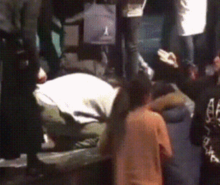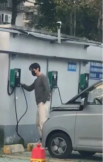 粉丝偶遇胡歌,他一身休闲装,戴着口罩,提着环保塑料袋,开着一台迷你小电车