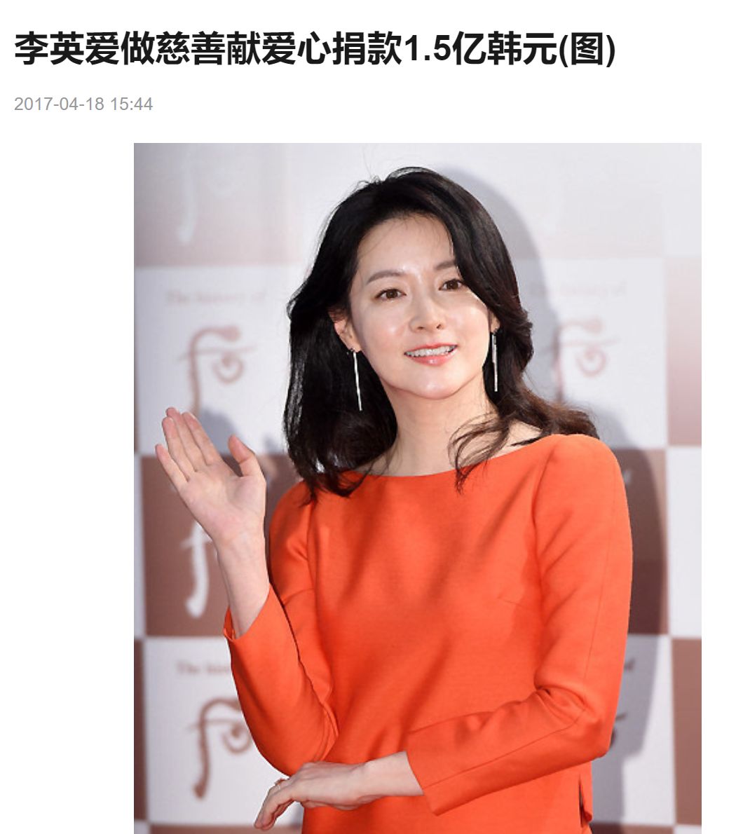 刚出道时,因为长相甜美且充满元气,李英爱被媒体冠以“氧气美女”的称号,而她坚持多年的慈善事业,也确实成为了许多人陷入困顿时的氧气,帮他们找到了继续活下去的动力。