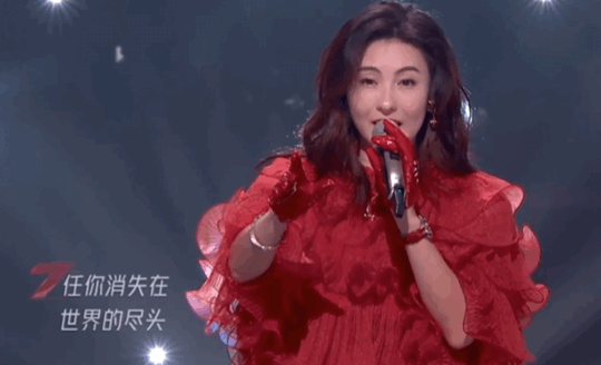 等到了舞台上,她一袭红裙,轻笑间依旧美得闪闪发光。
