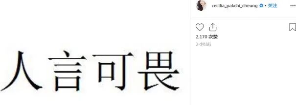面对所有不友善的声音,张柏芝只是在社交平台上留下“人言可畏”四个字,除此之外,没有任何辩解。