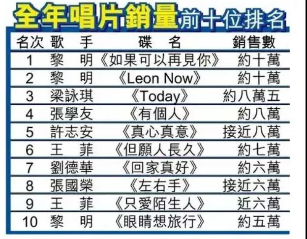 巅峰时,香港唱片销量前十名中有三张是他的。