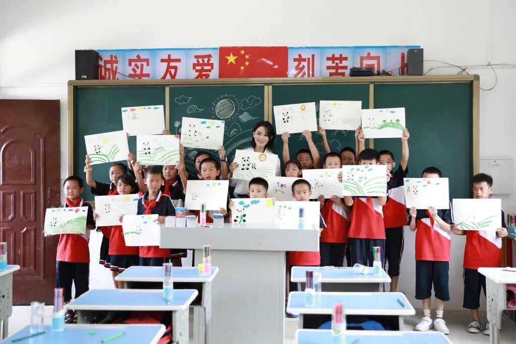 在央视心连心活动上,她首次尝试主持,还做起了美术老师,细心教小朋友们画画。
