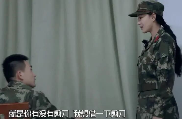 因为长发影响训练,张馨予硬着头皮找教官借剪刀。