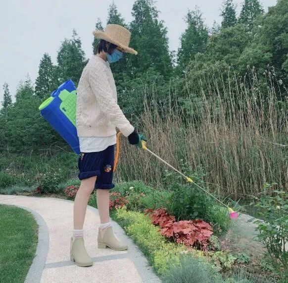 卷起睡裤,穿上雨靴,她是洒药的花匠。