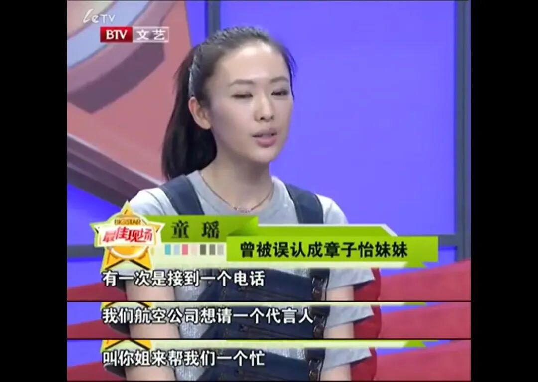 2007年,北京电视台办了一档时尚节目,当童瑶出现在红地毯上时,旁白解说员就错把童瑶当成章子怡介绍,并且一错到底,由始至终都念成“章子怡”。