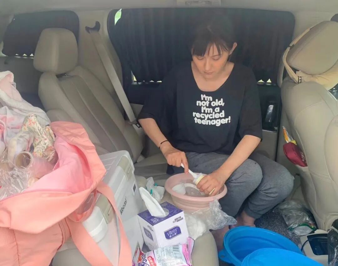 她一边拍戏,一边喂奶。要是遇到堵奶,起了淤肿,只能自己拿着针筒抽出来,还不能打麻药。