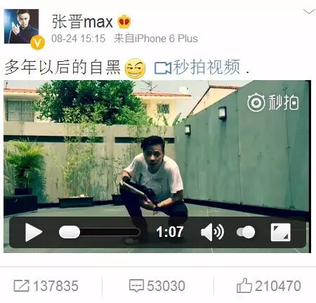 张晋有机会拍摄短视频,首先要感谢太太蔡少芬(点击可查看)女士。