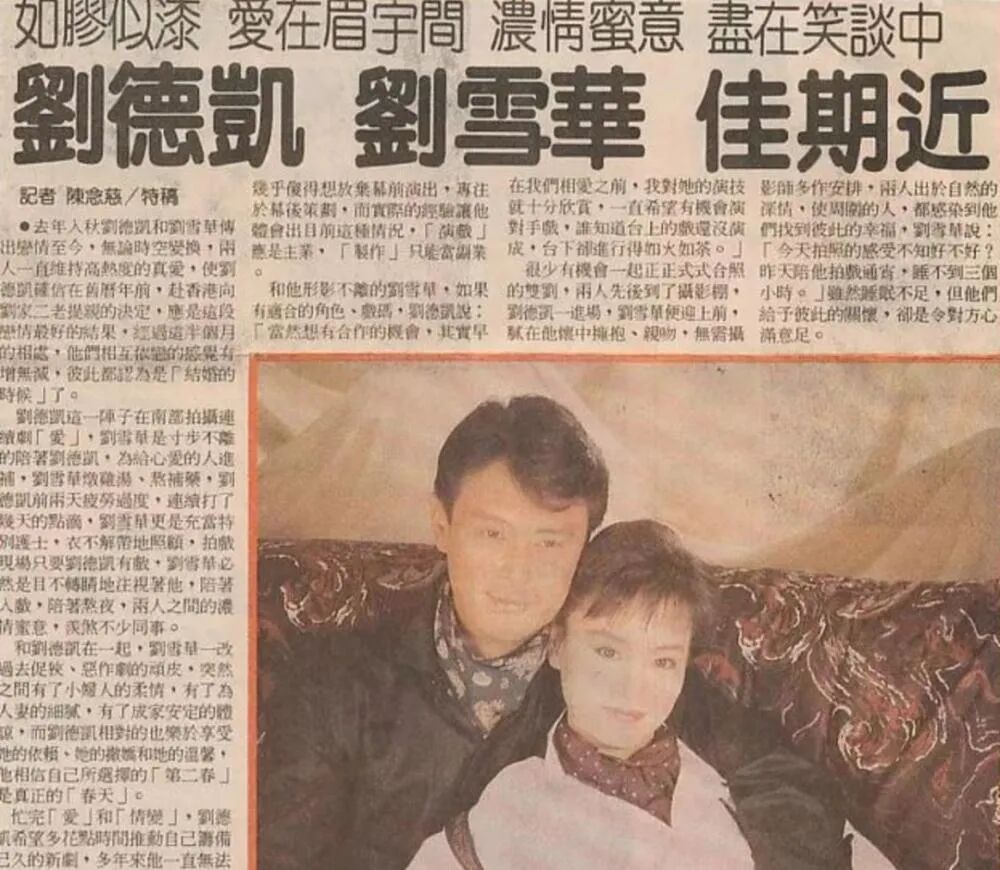 1990年,刘雪华与刘德凯合作《风里的爱》,那时候的刘德凯风流倜傥,曾一度是万千少女心中的完美情人。