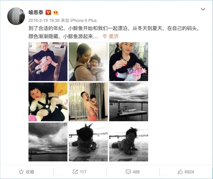 他的微博里也有了新的内容——和家人相处的温暖瞬间。