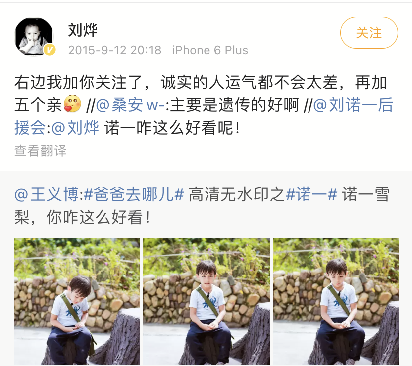 真人秀火了,刘烨也没落下,带着儿子诺一出镜,娃红他也红。