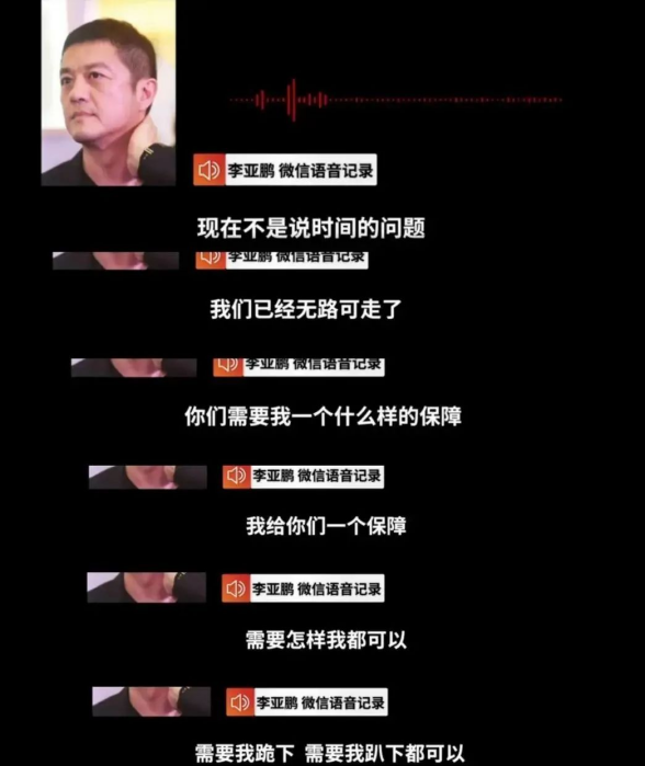 网上甚至流传出一段录音,李亚鹏向债主诉说自己的现实困境,表示自己已无路可走。