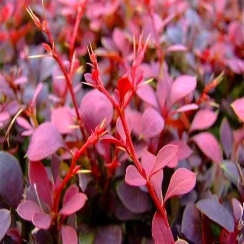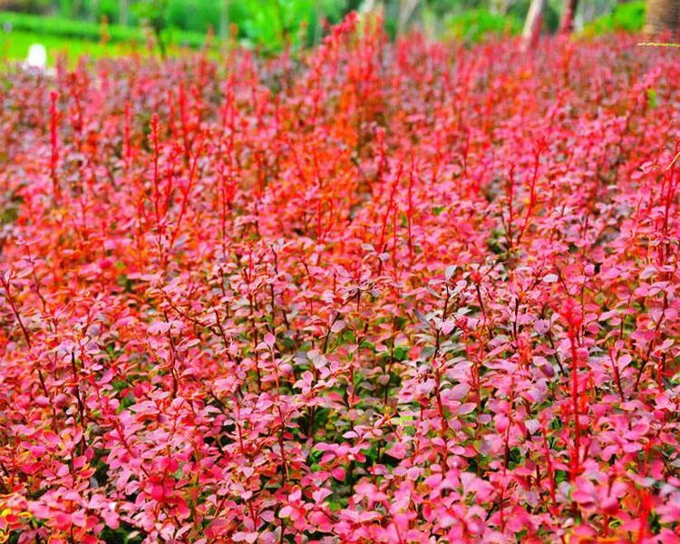 红叶小檗跟红花继木类似,但还是有些区别,比如红花继木花为桃红色,而红叶小檗花为黄色,是一种叶色常年为红色的落叶小灌木。