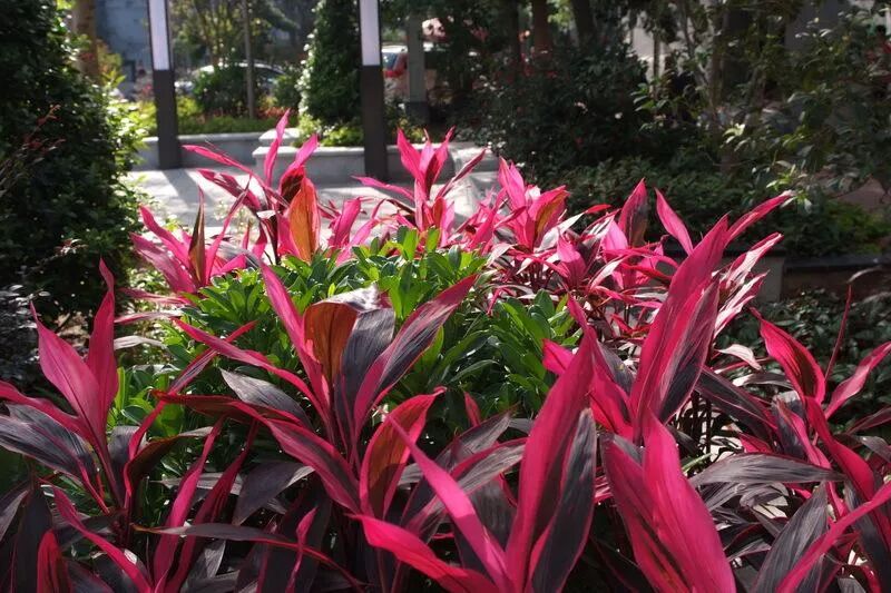 朱蕉,一种多年生常绿灌木,叶色常年保持深红色,也是一种很不错的庭院彩叶植物。