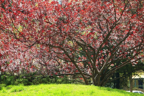 红叶李又叫紫叶李,一种落叶开花小乔木,除冬季落叶外,其它季节都是常年叶色保持紫红色,每年4月份开花,花白色细小且多,非常漂亮!