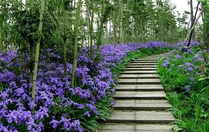 鸢尾,香水之花,花形似蝴蝶,花色淡蓝或蓝紫色,有香气,4-5月份开花,成片种植,非常漂亮!
